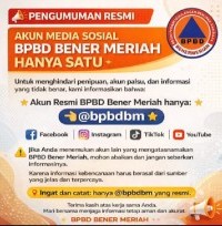 Dalam pengumuman yang diunggah oleh akun media sosial instagramnya, BPBD Bener Meriah menegaskan bahwa Akun Resmi BPBD Bener Meriah hanya satu, yaitu: @bpbdbm