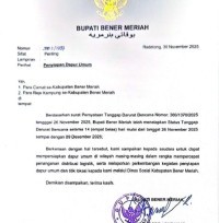 Redelong, Bener Meriah – Bupati Bener Meriah telah menetapkan Status Tanggap Darurat Bencana selama 14 hari, terhitung mulai tanggal 26 November 2025 sampai dengan 09 Desember 2025. Penetapan ini didasarkan pada Surat Pernyataan Tanggap Darurat Bencana Nomor: 360/1370/2025 tertanggal 26 November 2025.