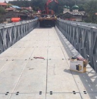 “Struktur utama jembatan Bailey sudah terpasang hampir seluruhnya. Rangka baja di sisi kiri dan kanan tampak utuh, sementara lantai jembatan telah terpasang rapi dan menyatu. Kondisi ini menunjukkan bahwa pengerjaan telah mencapai tahap finishing,” ujar Hendra.