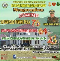 Bener Meriah - Dalam momentum peringatan Hari Ulang Tahun ke-76 Satuan Polisi Pamong Praja, ke-64 Satuan Perlindungan Masyarakat, dan ke-23 Satuan Wilayatul Hisbah, Kepala Satuan (Kasat) Polisi Pamong Praja dan Wilayatul Hisbah (Pol PP dan WH) Bener Meriah, Abdul Gani, S.P., M.Si., berpesan untuk meneguhkan kembali komitmen pengabdian kepada bangsa dan daerah.