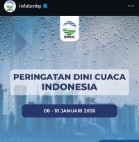 * 08 Januari 2026: Status SIAGA (Hujan lebat - sangat lebat), serta Peringatan Dini Angin Kencang.