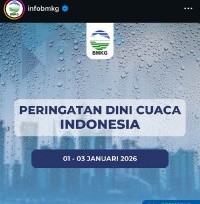 JAKARTA, 1 Januari 2026 – Badan Meteorologi, Klimatologi, dan Geofisika (BMKG) telah mengeluarkan pembaruan Peringatan Dini Cuaca untuk periode 1 hingga 3 Januari 2026. Peringatan ini menyoroti potensi terjadinya hujan lebat hingga sangat lebat yang dapat memicu bencana hidrometeorologi seperti banjir dan tanah longsor.