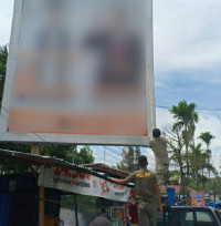 Petugas Lintas Sektor Tertibkan Alat Peraga Kampanye Caleg