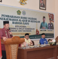 Kepala Pusat Litbang Lektur Khazanah Keagamaan dan Manajemen Organisasi Balitbang Diklat Kemenag RI, Prof. Dr. Arskal Salim, M.Ag diwakili Dr. Bahari, MA mengatakan, bahwa proses kegiatan penerjemahan al-qur’an ke dalam bahasa Gayo sudah masuk proses validasi dan diharapkan proses tersebut adalah rangkaian terakhir.